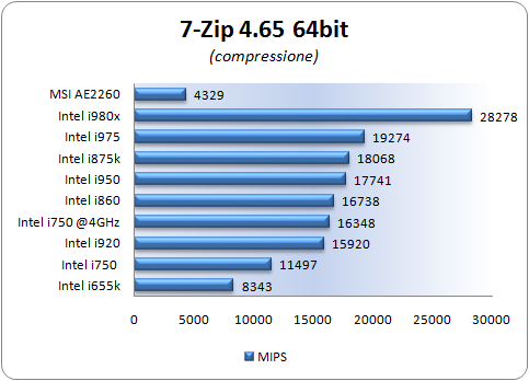 7-Zip integra un benchmark interno con il quale è possibile selezionare il numero di threads da eseguire in parallelo a seconda della tipologia di processore utilizzato. Riporta i risultati in MIPS dei test di compressione e decompressione.
