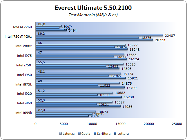 Abbiamo misurato la capacità in lettura, scrittura, copia e latenza per la memoria