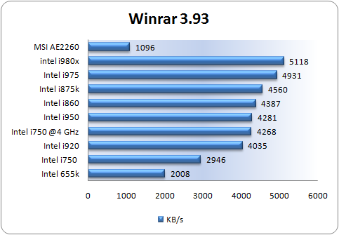 Winrar include una modalità di benchmarking automatizzata, che misura la capacità del proprio sistema di eseguire compressioni di files fornendo un output in Kbytes al secondo.